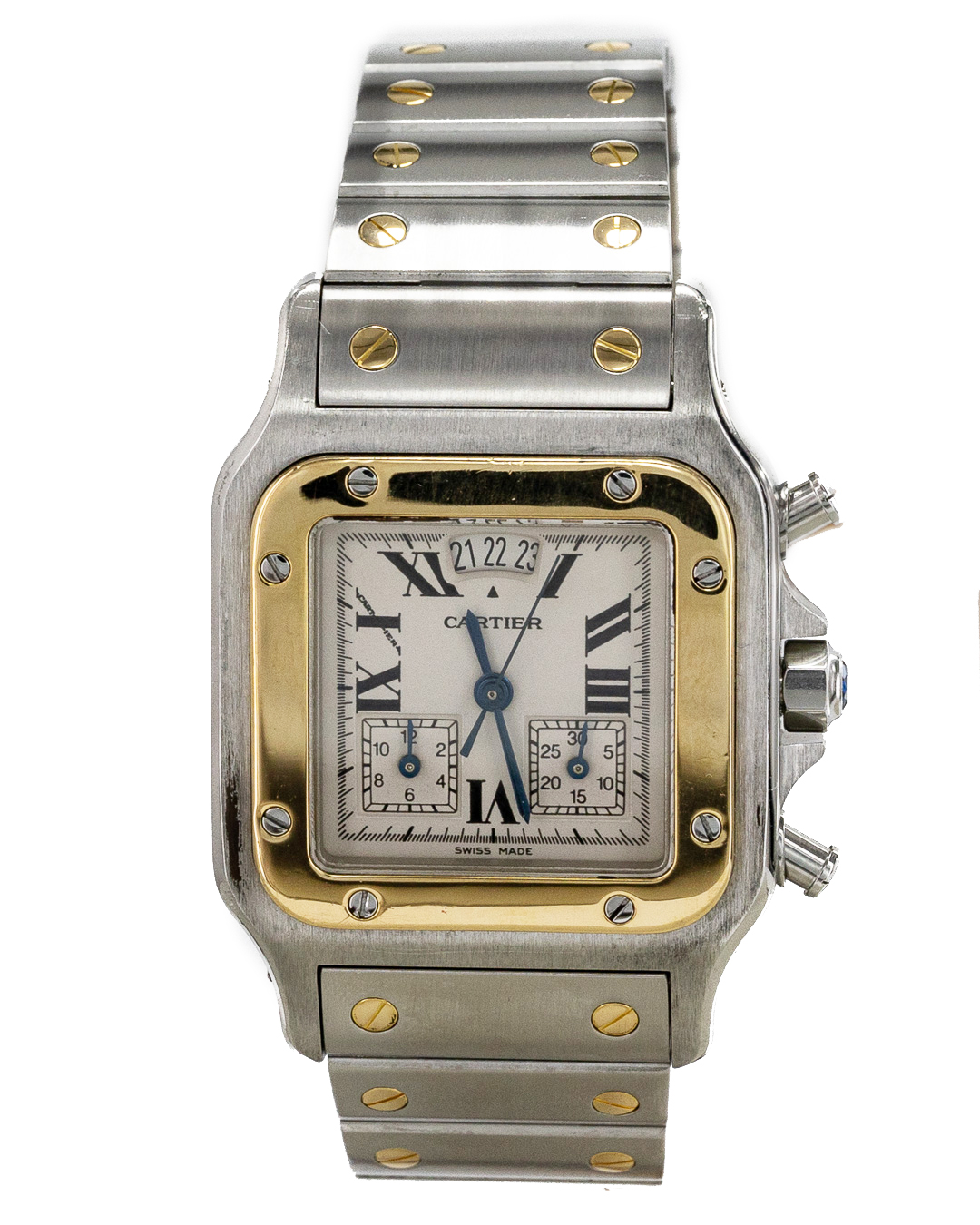 2425 santos è un orologio unisex prodotto da Cartier. L’orologio attualmente in vendita da Cavour è usato, la carica è quarzo, la cassa è in oro/acciaio ed il cinturino è in oro/acciaio. L’ orologio ha la scatola CAVOUR, la garanzia a corredo è quella del negozio Cavour. (seriale: 100xxxx). Cartier santos 2425 è venduto da Cavour a € 4.990,00.